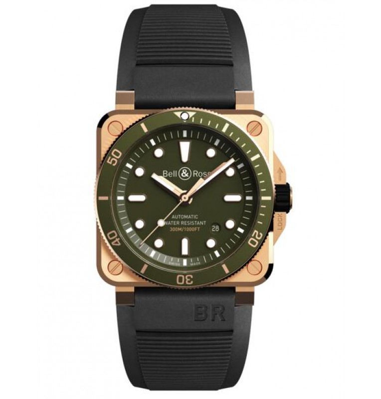 Esta edicion limitada se distingue de las demas por su esfera. Bell & Ross presenta una atractiva combinacion que hace que dos mundos se encuentren por primera vez. La alianza de Bronze, el metal preferido de la industria del buceo, y el verde oliva, que refleja el color del uniforme de camuflaje militar, funciona maravillosamente en conjunto, dandole un aspecto neo-retro y resistente.