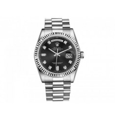 La descripcion oficial: El Rolex Day-Date esfera negra 18K oro blanco 118239BKDPCaja de oro blanco de 18 k con una pulsera Rolex Presídent de oro blanco de 18 k. Bisel fijo de oro blanco de 18 quilates. Esfera negra con agujas plateadas y marcadores de hora de diamantes. Dial Type: Analog. Visualizacion de la fecha a las 3 en punto; visualización del dia a las 12 en punto ... Movimiento automatico. Cristal de zafiro resístente a los arañazos. Atornille la corona. Diámetro de la caja: 36 mm. Forma de caja redonda Cierre de corona oculta. Funciones: fecha, dia, hora, minuto, segundo. Variaciones del articulo: 118239, 118239-BKDP, Rolex-118239, Rolex-118239-BKDP. Rolex Day-Date esfera negra 18K oro blanco Presídente automatico Mens Diamond Watch 118239BKDP.