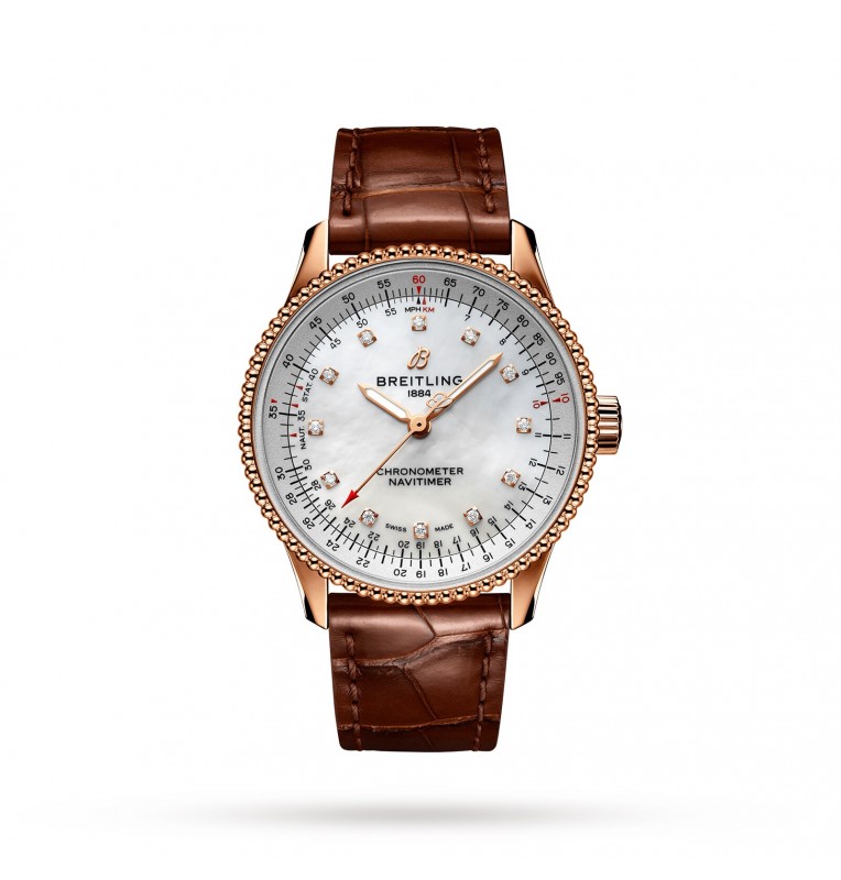 Encuentra la mejor calidad en relojes replica 1:1 del Breitling Navitimer Automatico 35 con correa de cuero marron en oro rojo de 18 k R17395211A1P2 desde China